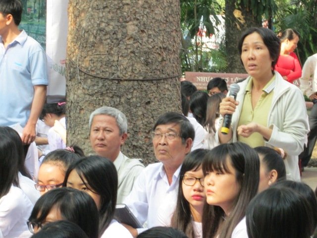 | Thi cử không chỉ là nỗi lo riêng của sinh viên - Ảnh chụp phụ huynh đặt câu hỏi trong một buổi tư vấn tuyển sinh 2015 - Đức Tâm |